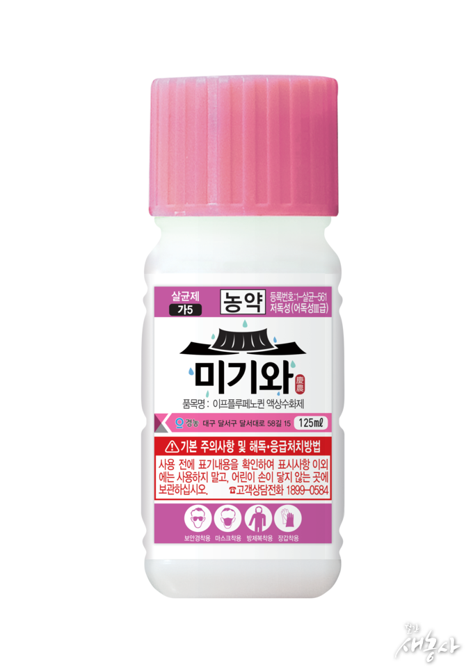 ‘미기와’는 흑성병·잿빛곰팡이병·잿빛무늬병 등에 탁월한 효과를 가진 신규 계통의 살균제다. 시험연구 결과, 처리 과실은 무처리 대비 병 확산을 95% 이상 억제했다, 기존 계통의 살균제와 교차저항성이 없어 병 발생 초기에 예방적 방제로 사용하거나, 병 발생 이후 치료적 방제에도 유연하게 대응할 수 있다.