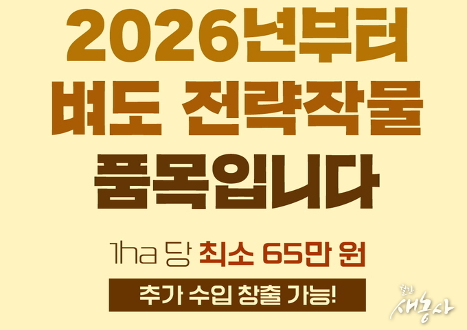 농림축산식품부(장관 송미령)는 2026년부터 ‘수급조절용 벼 사업’을 새롭게 시행한다고 1월 22일 밝혔다. 수급조절용 벼는 평상시에는 생산단계부터 가공용으로 용도를 제한하여 밥쌀 시장에서 해당 면적을 격리하고, 흉작 등 비상시에는 밥쌀로 전환하여 쌀 수급을 안정시키는 제도다. 참여 농업인은 ha당 500만 원의 전략작물직불금을 받게 된다. 사업 면적은 총 2~3만ha 규모 내에서 선제적 수급조절 추진 상황을 고려하여 탄력적으로 운영할 계획이다.