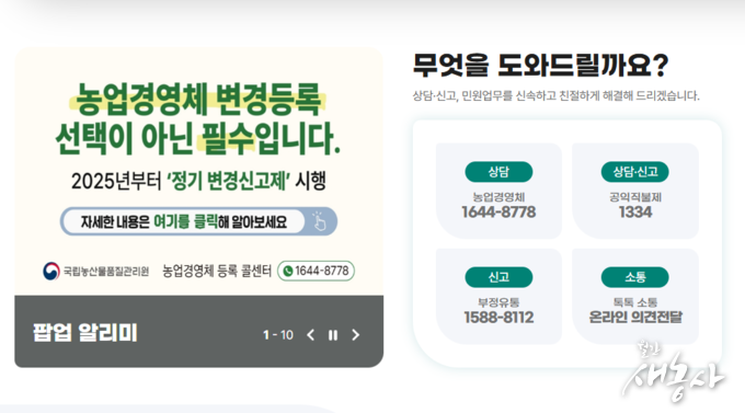 한편, 농관원은 농업인의 농업경영체 등록 불편을 해소하기 위해 「농업경영정보 등록기준의 세부 내용 및 운용 규정」(농관원 고시)을 일부 개정하였다고 1월 9일 밝혔다.
