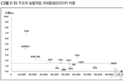 한국농촌경제연구원(KREI, 원장 한두봉)은 농업 외부 환경 변화가 빨라지는 상황에서 세계 주요 국가의 농업과 변화, 그 속에서 한국농업이 차지하는 위치는 어느 정도인지 확인하기 위해 「통계로 본 세계 속의 한국농업」 보고서를 해마다 발간하고 있다. 2023년 세계 농림어업 GDP는 4조 3,931억 달러(약 6,094조 원)로 전년보다 0.6% 증가하였으며, 중국, 인도, 인도네시아, 브라질 순으로 크게 나타났다. 한국은 273억 달러(약 37조 원)로 0.5% 감소하였으며, 전체 국가 중 29위, OECD 회원국 중 23위에 해당했다. 2023년 세계 농촌인구는 34억 1,572만 명으로 전년과 비슷했으며, 인도, 중국, 파키스탄, 인도네시아, 방글라데시, 나이지리아 순으로 많았다. 한국은 967만 명으로 0.6% 증가했다. 2023년 세계 경지면적은 15억 7,160만 ha로 전년과 비슷했고, 인도, 미국, 중국, 러시아 순으로 넓었다. 한국 경지면적은 166만 ha로 전체 국가 중 102위이며, 유기농업 면적은 4만 ha로 76위에 해당했다. 2023년 OECD 회원국 농업총생산 중 농업보조금이 차지하는 비중은 9.0%였다. 한국은 7.3%로 전년(6