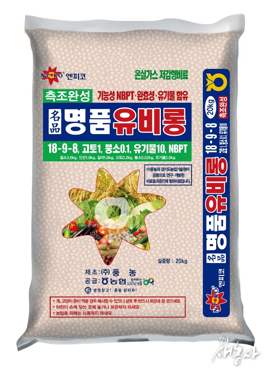 완효성 비료 ‘롱런모든작물’(12-5-5, 고토2, 붕소0.2, 규산6, 석회15, 유황5), 기능성 비료 ‘명품유비롱’(18-9-8, 고토1, 붕소0.1, 유기물10, 비효 증진제 함유)은 관행 비료보다 양분공급이 완효적, 지효적이며, 양분흡수효율도 뛰어나 20% 이상의 시비 절감효과도 있다.