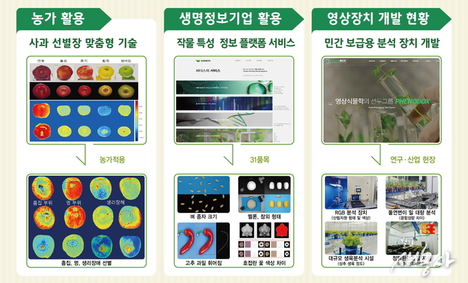 기술 활용도는 상당히 높다. 현재 국립종자원의 품종 등록 프로그램 개발, 한국원자력연구원의 밀‧수수 일반종자와 돌연변이 종자 구분, 생명정보기업의 플랫폼을 통한 형질 자동분석 서비스, 산업체의 민간보급용 작물 영상촬영장치 개발 등에 기술이 제공되었다. 가나, 세네갈 등 아프리카 15개 국가에선 기후 적합 벼 품종 개발에 활용되고 있다. 이외에 당도 높은 딸기 선발, 흠집이나 멍든 사과 골라내기, 크기가 제각각인 팽이버섯 갓의 수 계산, 옥수수 크기와 낟알 수 확인, 꽃과 과일의 수확 시기 예측 등에도 적용되고 있다. 식품에서는 제빵 과정에 적용하여 계량, 반죽, 굽기 등 전체 공정에서 불량 여부를 판단하여 골라낸다.