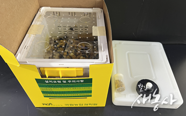 우선 꿀벌은 딸기 1화방에서 꽃이 10% 이상 폈을 때, 온실 660㎡ 기준으로 7,500~10,000마리를 투입한다. 벌통은 내부 온도를 30℃로 유지하고, 꿀이 든 벌집 형태의 먹이도 넉넉히 준비하며, 여왕벌 산란을 위해 대용화분도 넣어준다. 온실 660㎡ 기준으로 오전 11~12시 비닐온실 안을 날아다니는 꿀벌 수가 12마리 이하면 상태를 반드시 점검한다.