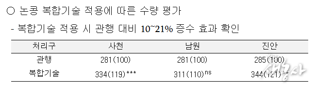 정부는 2027년까지 콩 자급률을 43.5%로 높일 방침이다. 이에 농진청은 안정적인 논콩 생산 기반을 마련하기 위해 깊이거름주기 기술과 바이오차를 활용한 저탄소 복합기술을 개발해 경남 사천, 전북 남원‧진안에서 지난해 1년간 현장 실증을 진행했다.