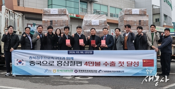 충북청주프로축구단(대표이사 김현주)이 국내 프로축구단 최초로 구단 자생력 강화를 위해 충북인삼농협(조합장 소진호)과 협력해 추진한 수익 사업을 통해 지역 특산물의 중국 수출 성과를 거뒀다.