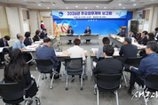 충북 음성군(군수 조병옥)은 10월 13일부터 14일까지 군청 상황실에서 2026년도 주요업무계획 수립을 위한 보고회를 개최해 주요 정책사업 추진 상황과 문제점을 점검해 내년도 군정 운영 방향을 심도 있게 논의했다. 특히 그린에너지 스마트농업타운 투자선도지구 조성 사업, 금왕읍·맹동면·대소면 농촌 중심지 활성화 사업 등 농민 관심도가 높은 전략사업의 추진 상황 등을 면밀히 점검했다. 교육 분야에서는 MOU를 통한 차세대 청년, 농업인들에게 스마트농업 양성 교육프로그램 지원방안 등이 논의됐다. 정책 분야에서는 고령화, 인구감소 문제 해결을 위한 탄소중립 실현 방안과 국가전략산업인 스마트농업 육성 방안에 대해서도 심도 있게 의견을 나눴다. 군은 이번 보고회에서 제시된 의견을 면밀히 검토해 역량을 집중하고 현장 중심의 사업 추진으로 주민들이 성과를 체감할 수 있도록 속도감을 높일 방침이다.